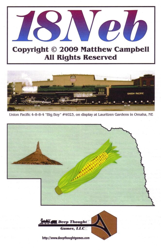 Настільна гра 18NEB є представником серії 18xx, відомої своїми глибокими економічними симуляціями. У цій грі від 2 до 4 гравців беруть на себе ролі інвесторів та президентів залізничних компаній, змагаючись за збагачення та розширення мережі в американських преріях Небраски. Гра вирізняється тим, що пропонує концентрований досвід, натхненний великими 18xx-іграми (наприклад, з Вірджинії, Флориди, Джорджії чи Алабами), але прагне бути цікавою альтернативою для тих, хто шукає менш тривалий, але все ще напружений та глибокий ігровий процес, що насичений цікавими рішеннями.