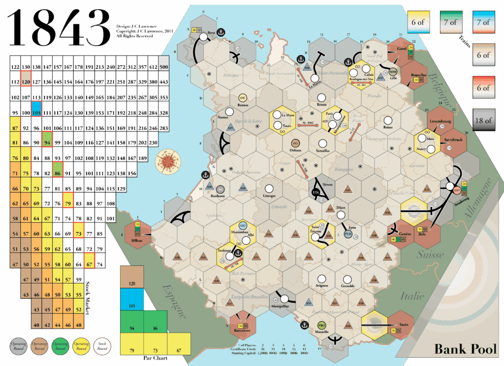 Настільна гра 1843 переносить гравців у епоху бурхливого розвитку залізничного транспорту, де кожен учасник стає інвестором і залізничним магнатом. Це не просто гра про прокладання шляхів; це складна економічна симуляція, що поєднує керування акціями, розбудову залізничних компаній та стратегічне планування.